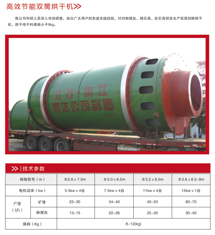江蘇順達(dá)重工科技有限公司是專業(yè)從事建材、冶金、化工、電力、造紙、煤炭等行業(yè)烘干工程設(shè)備、節(jié)能環(huán)保設(shè)備及配套爐業(yè)設(shè)備的工程設(shè)計(jì)、設(shè)備制造、安裝調(diào)試的EPC總承包重點(diǎn)企業(yè)。我公司始建于1984年(原鎮(zhèn)江市江南水泥機(jī)械廠),有30多年大型機(jī)械成套設(shè)備生產(chǎn)歷史,技術(shù)力量雄厚。多年來專業(yè)生產(chǎn)"鋰云母烘干機(jī),鋰礦烘干機(jī),鋰礦渣烘干機(jī),磷礦烘干機(jī),高效節(jié)能單筒、...